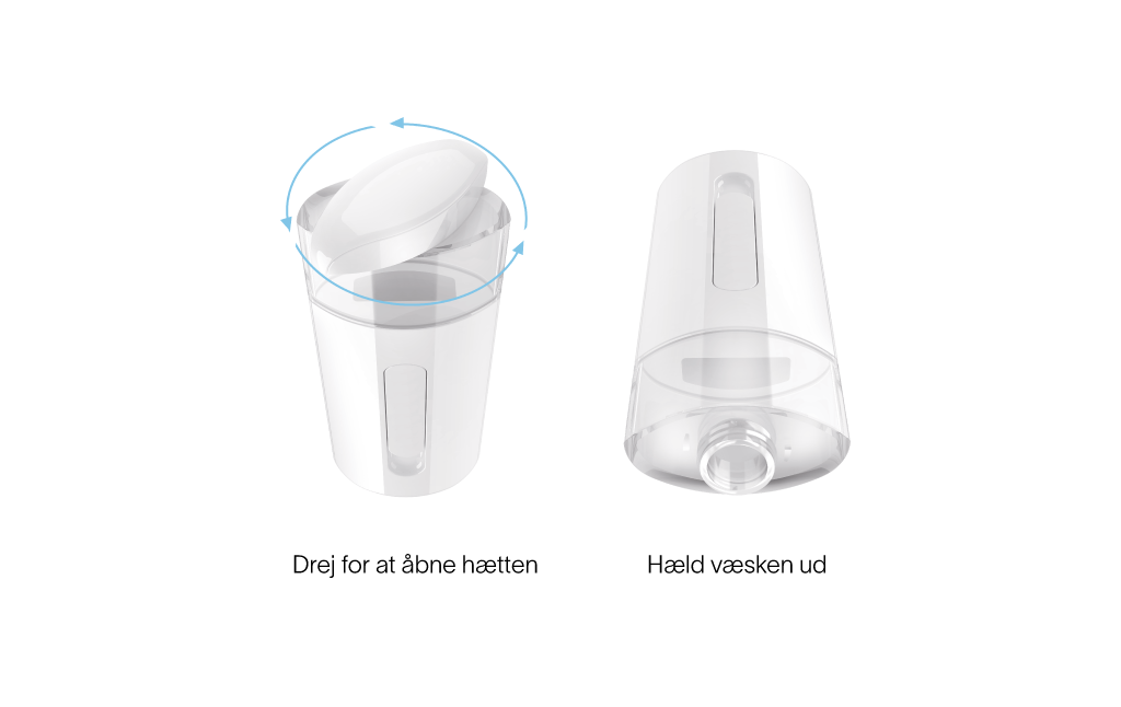 + Benyt kun demineraliseret vand. Brug gerne lunkent varmt vand