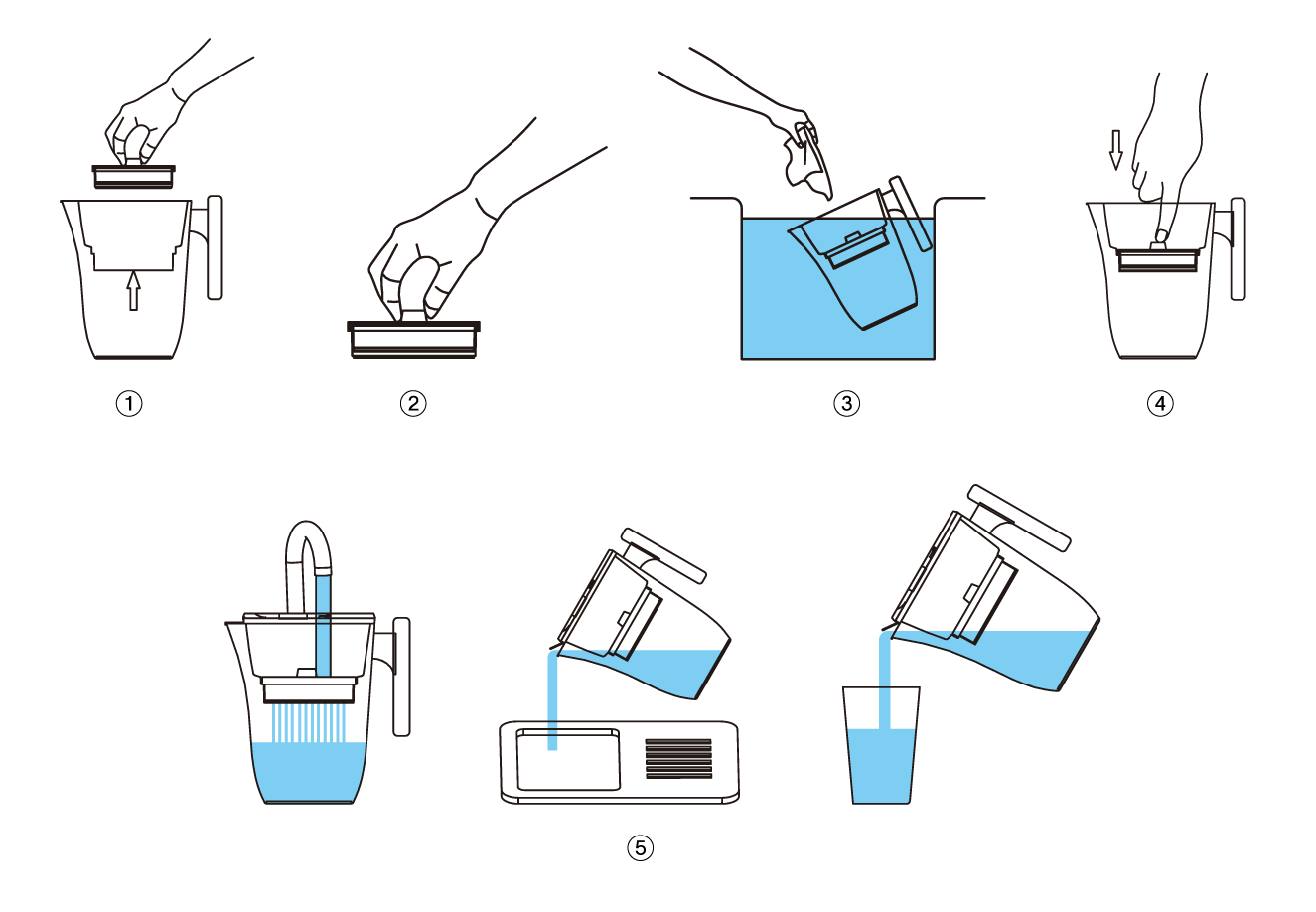 - Har kanden ikke være i brug i mere end en uge, lad vand gennemløbe filteret og kasser den første filtrering.